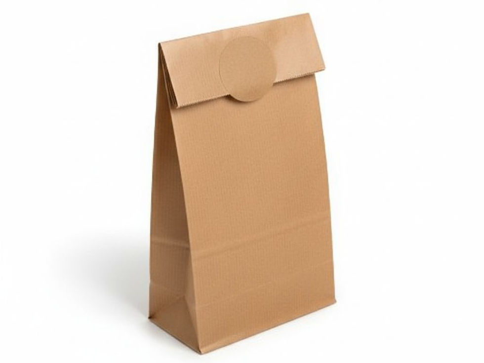 Bolsas de papel Kraft verjurado con base –80 gr-10x6x22cm con etiqueta de cierre